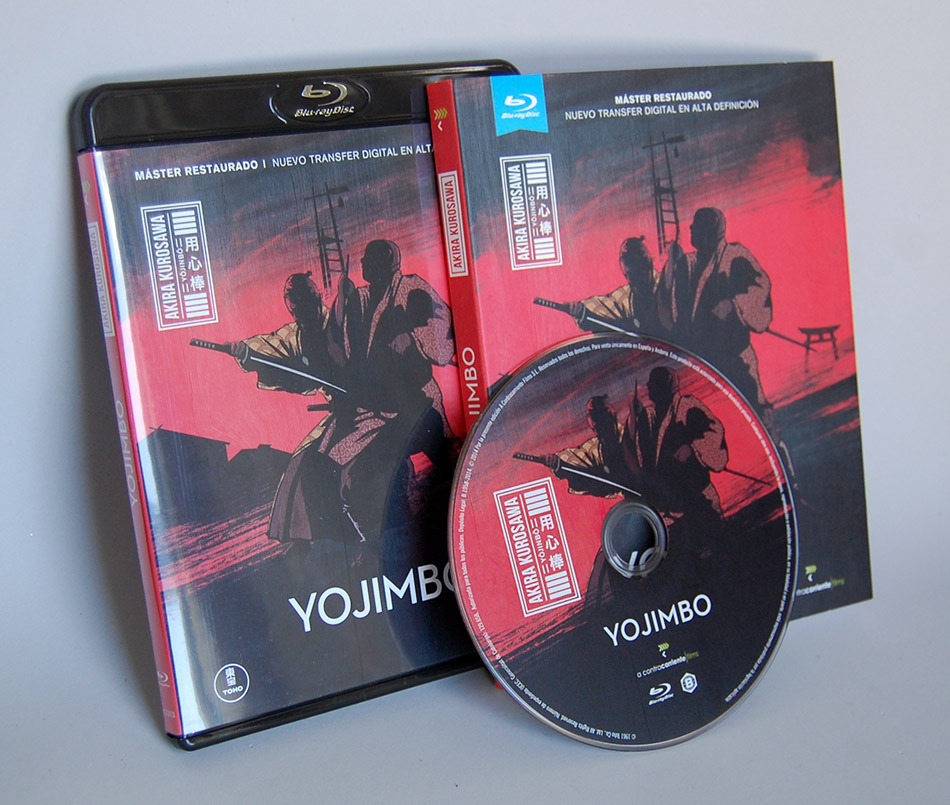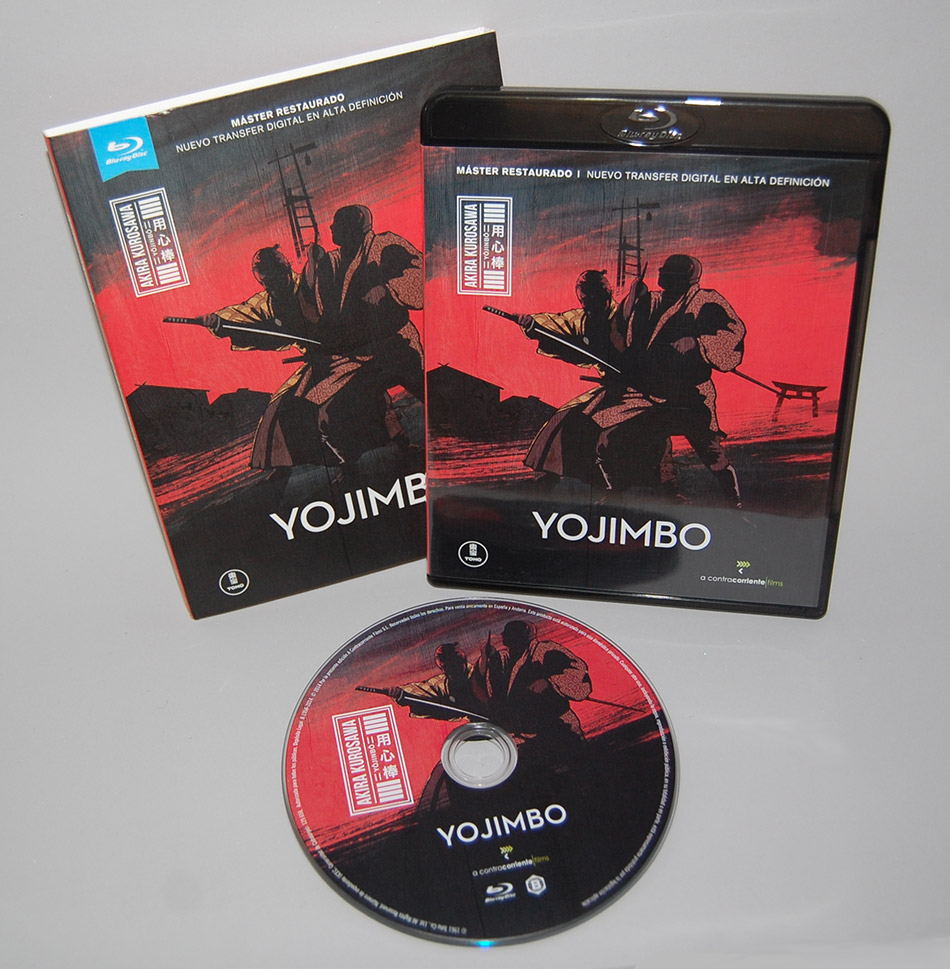 Yojimbo es la segunda entrega de la Colección Akira Kurosawa de A Contracorriente Films y comparte el mismo diseño que Los Siete Samuráis. Nuevamente nos encontramos con una fina funda de cartón en la que predominan los colores rojos y negros, que protege la caja de plástico negra con el disco de la película.