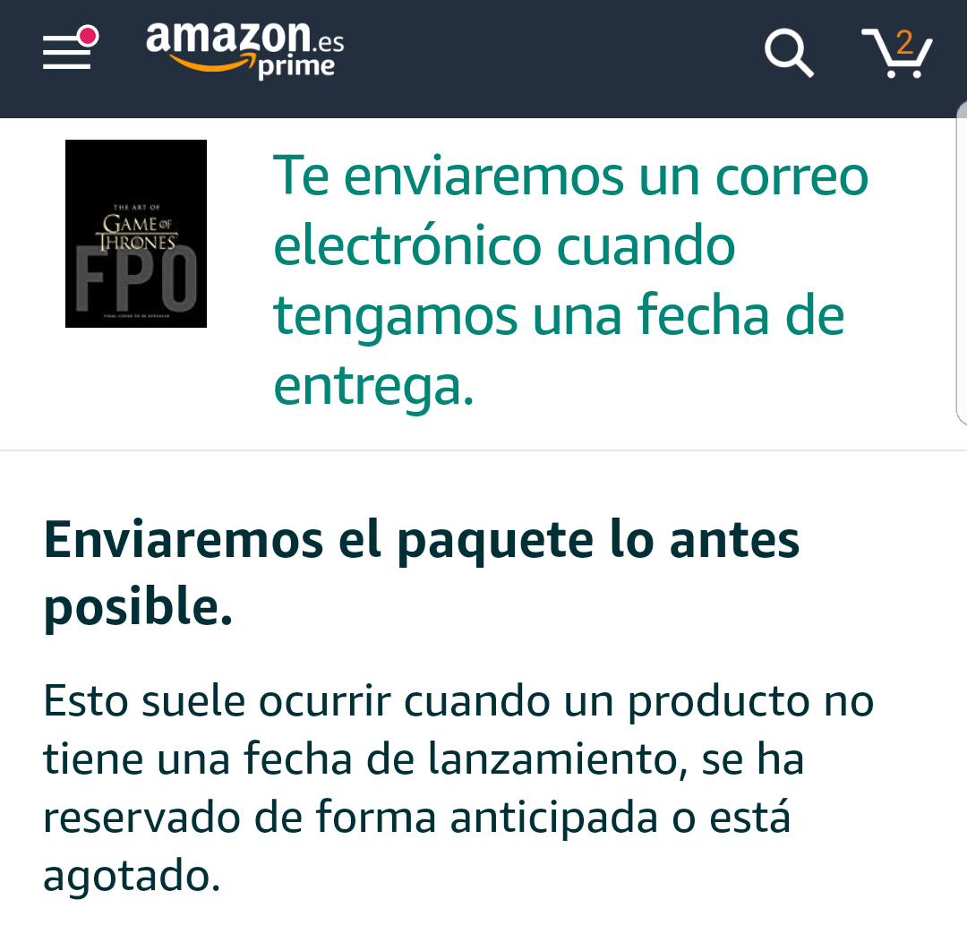 A mi también me ha llegado un mensaje retrasando el pedido. Confío en que Amazon lo acabe enviando.