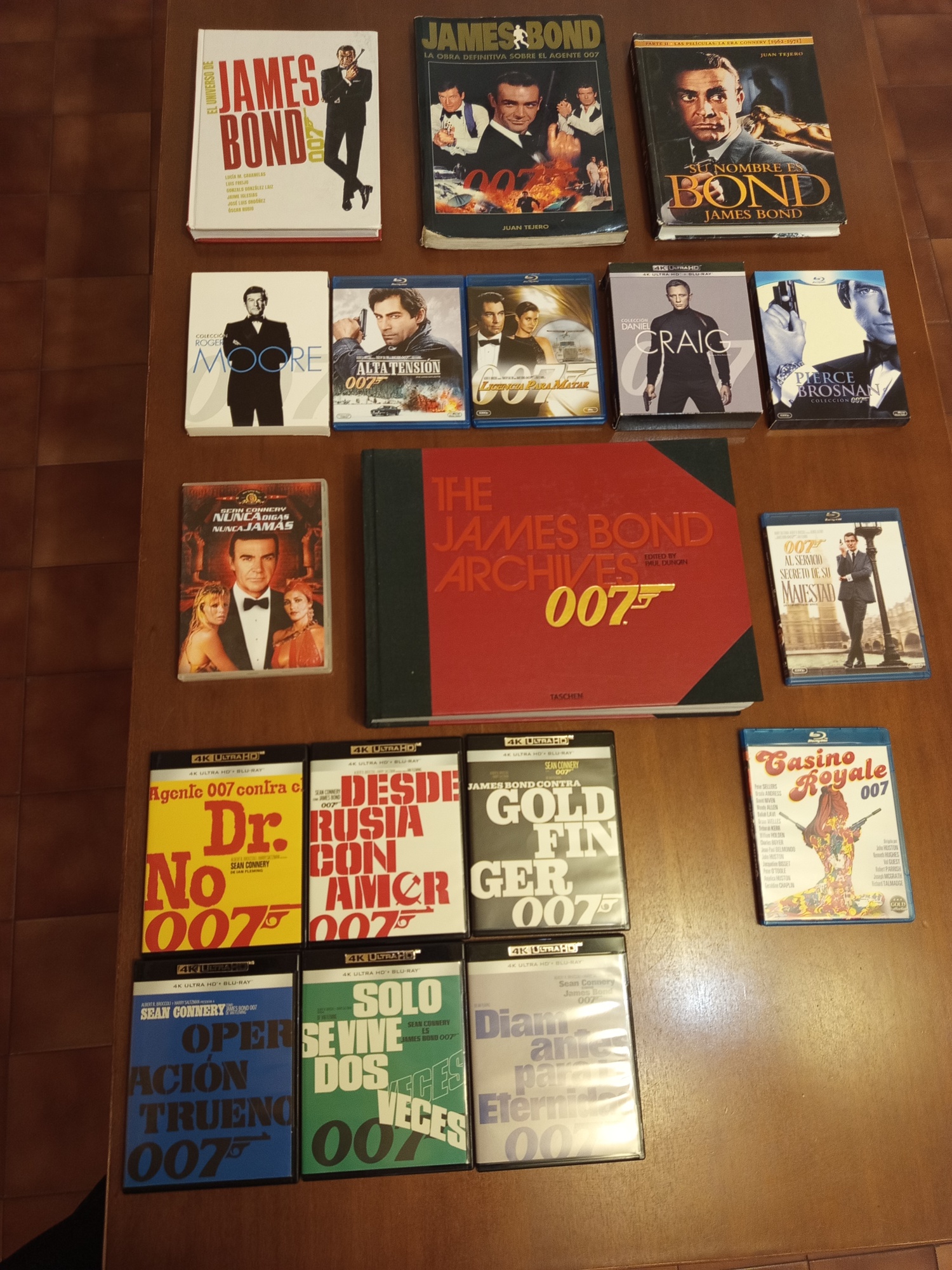 Yo tengo un pack en DVD que creo le falta alguna de Craig, de Craig las tengo todas en Blu-ray excepto la última en 4k, de brosnan también todas en Blu-ray y me tengo que hacer con las de connery en Blu-ray que me falta , o bueno ya en 4 k, que son los únicos 3 Bond que me gustan