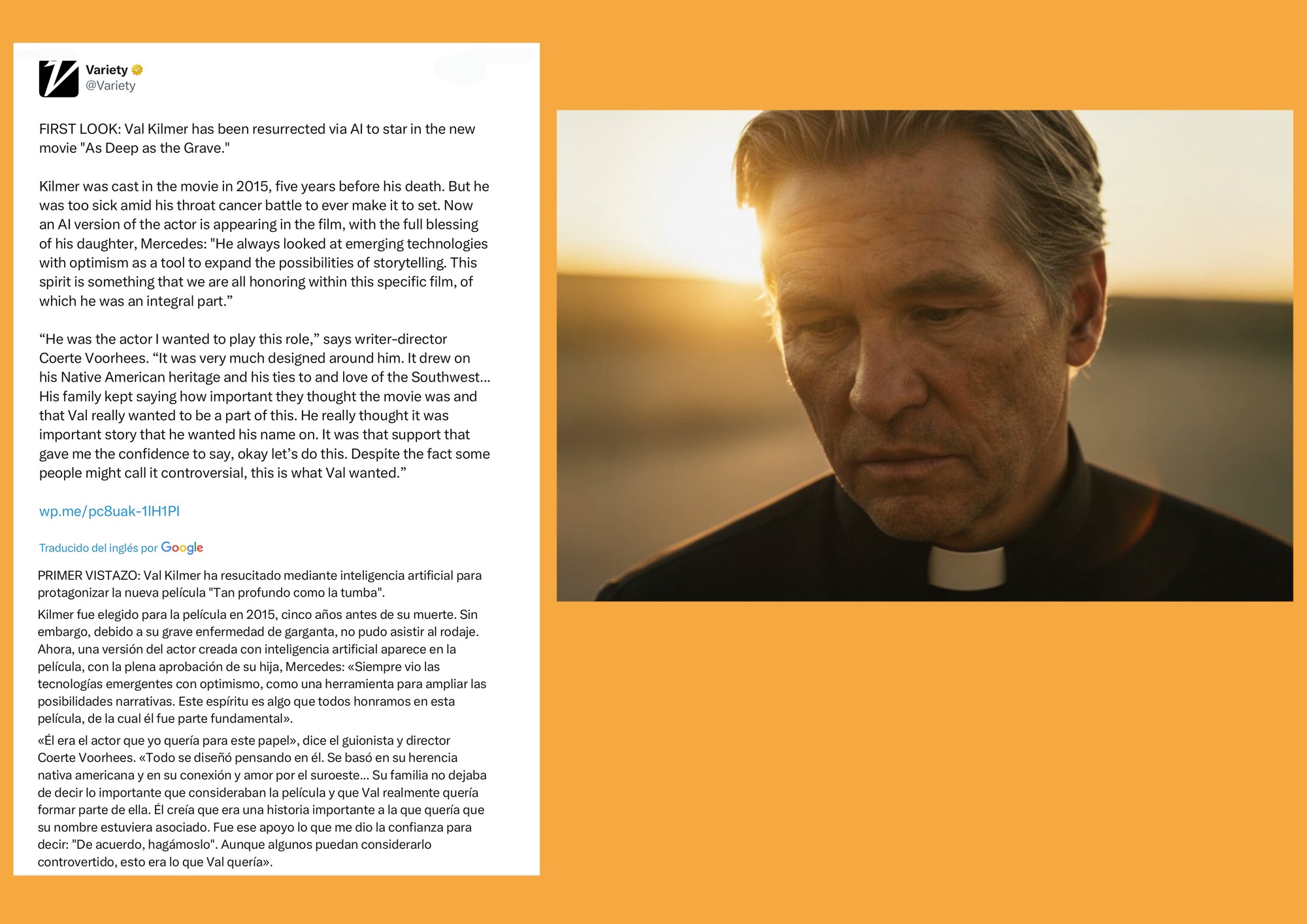 no entiendo que dice que fue elegido para la película en 2015, 5 años antes de su muerte... pero Val Kilmer murió en 2025. No me salen los números