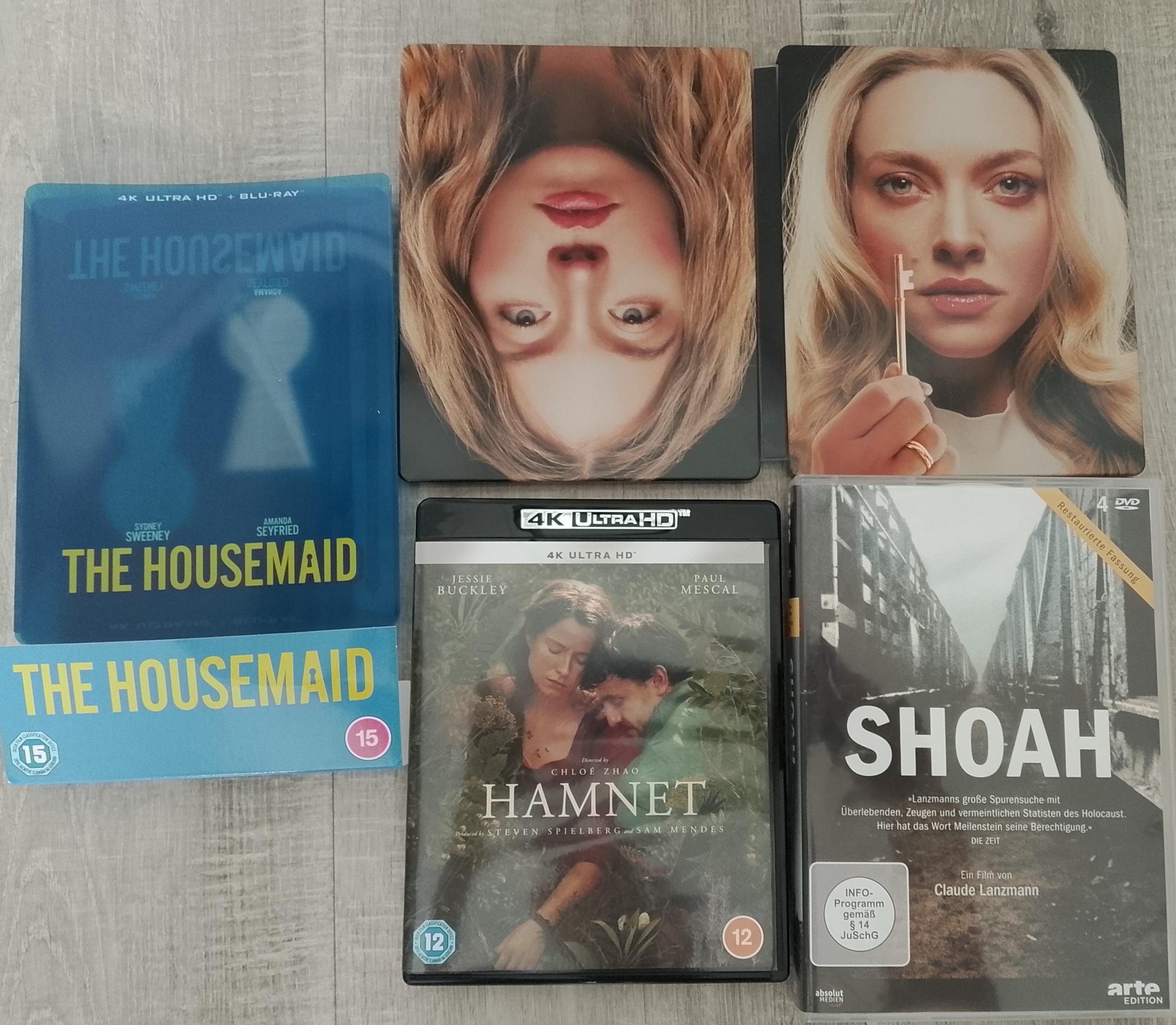Buenas compras, disfrutalas. La asistenta la vi hace poco y me gustó, Shoah tengo que hacerme con una copia y Hamnet la tengo pendiente.