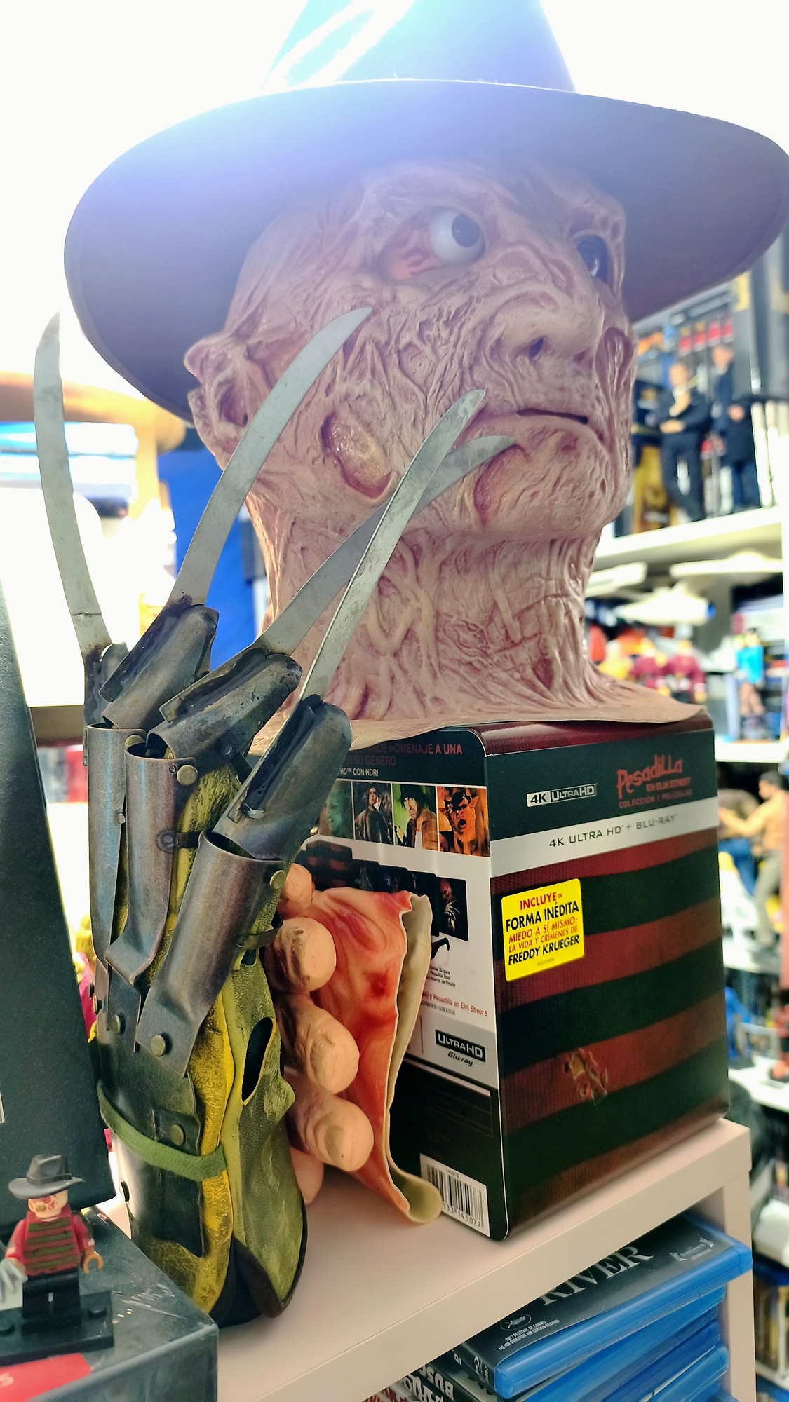 No sabía dónde ubicar la caja steelbook de la saga Pesadilla, pero...que mejor sitio que haciendo de jersey para su dueño.