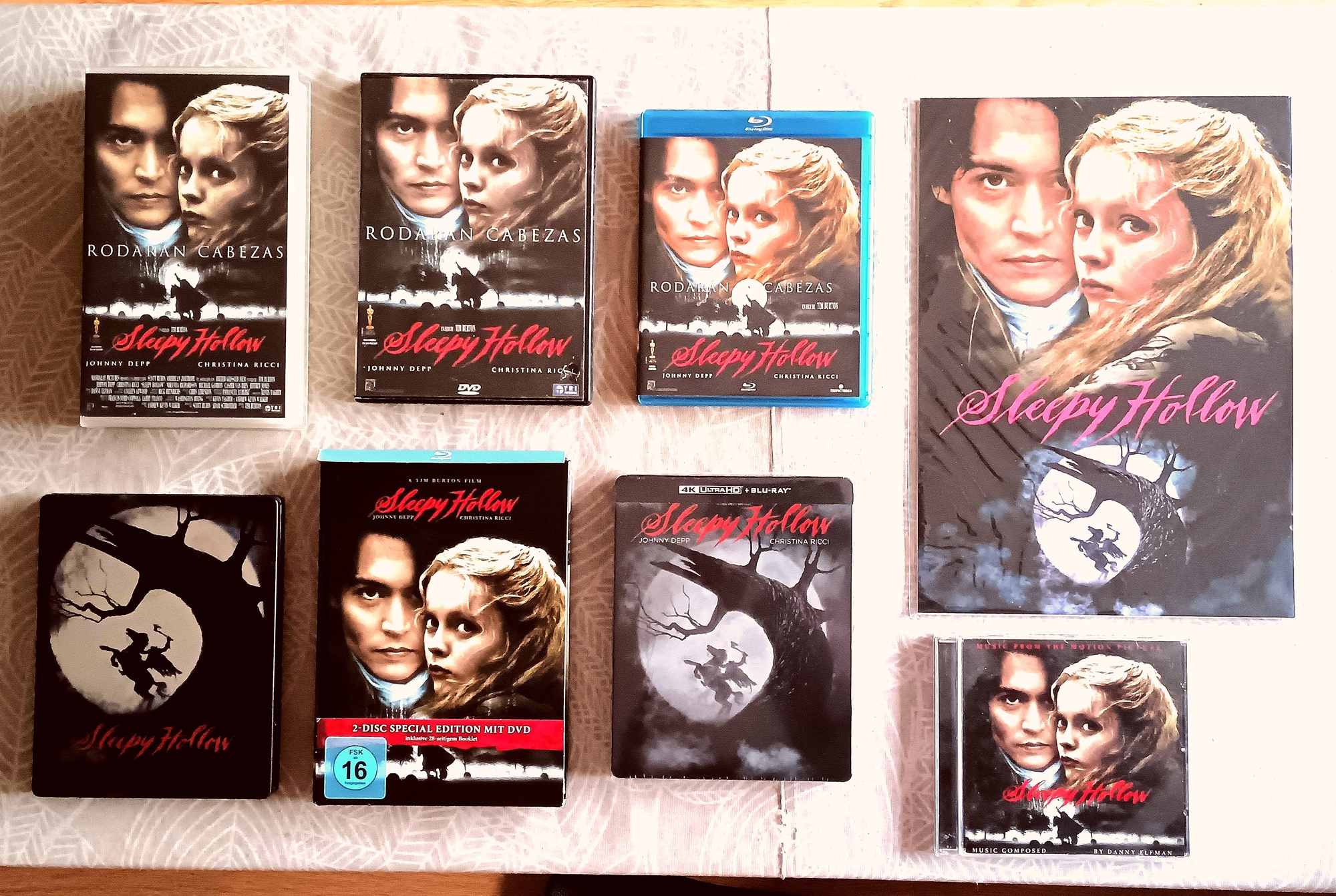 Todavía me acuerdo cuando vi el trailer en el estreno de 'La novia de Chucky’ allá por 1999,y llamó toda mi atención y pude verla en el cine a principios del 2000 y ya se convirtió en una de mis películas favoritas: la historia de Washington Irving (el libro también lo tengo pero no pude incluirlo en la foto),la dirección,las interpretaciones,una excelente Banda Sonora y toda esa escenografía gótica que la hacen redonda,de la filmografía del mejor Burton.