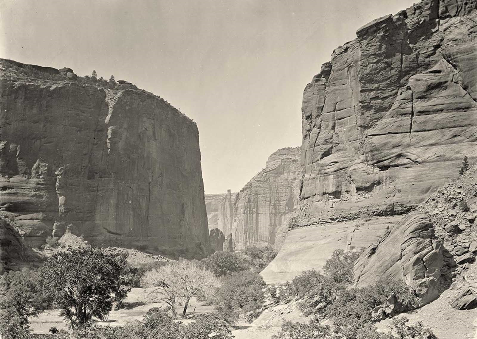 Esta imagen no es un fotograma de una película, sino una fotografía histórica real de finales del siglo XIX. Se trata del Cañón de Chelly (Canyon de Chelly) en Arizona, tomada por el fotógrafo Timothy O'Sullivan en 1873.